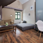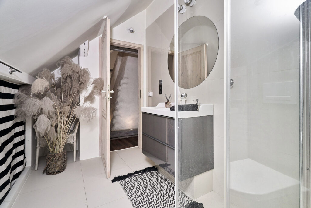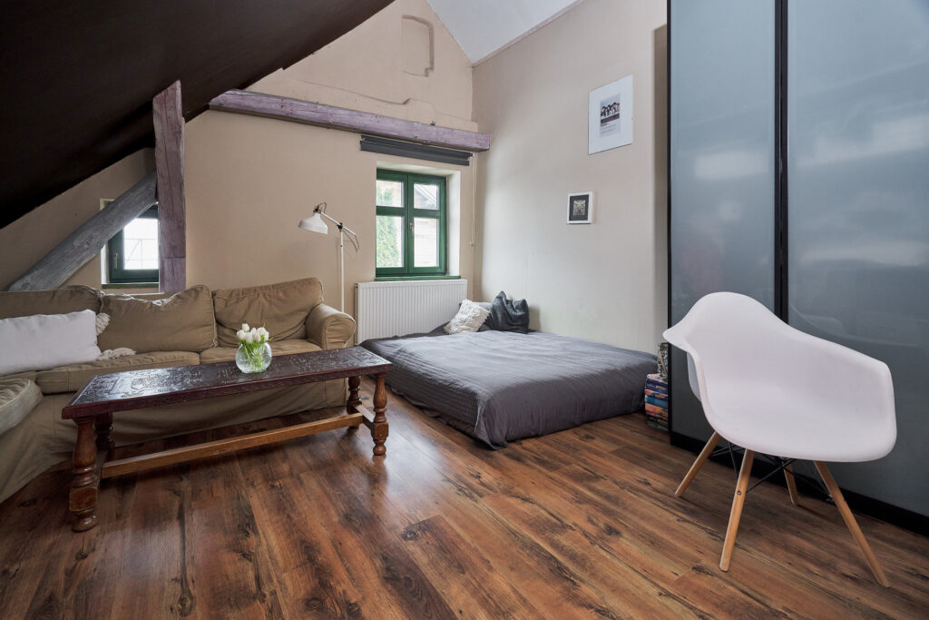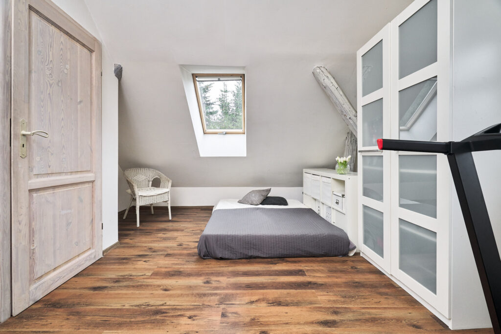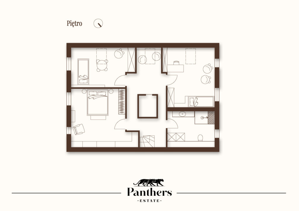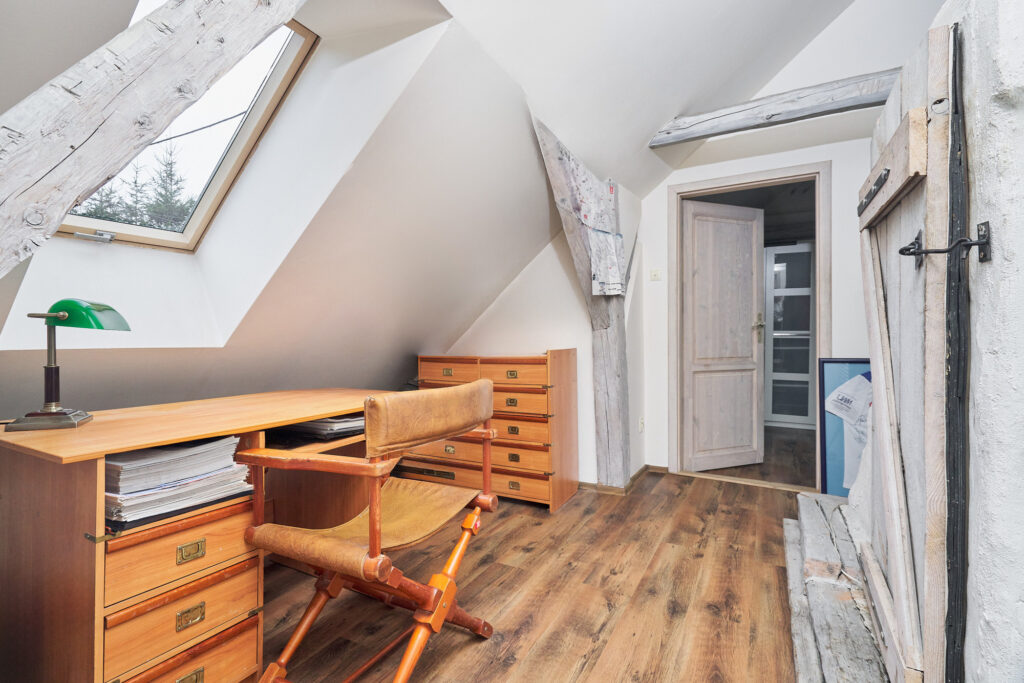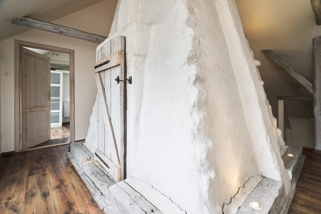 W centralnym punkcie piętra wzrok przyciąga niespotykany, odrestaurowany trzon kominowy z wejściem, który był standardowym rozwiązaniem użytkowym w XIX i XX wieku. Idealny pod wędzarnie. Dookoła znajdują się wejścia do trzech pokojów oraz łazienki z prysznicem. Od strony południowo zachodniej przestrzeń idealna do pracy biurowej lub innego zagospodarowania.