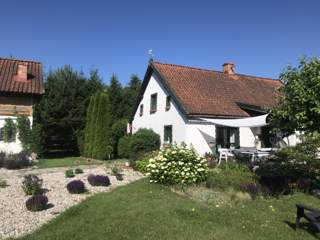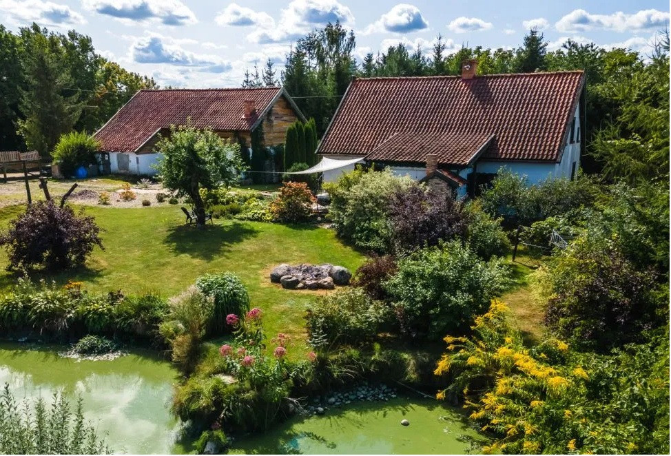Piękny ogród, który obejmuje uroczy staw otula zmysły- tworzy idealne miejsce do wypoczynku i rekreacji.